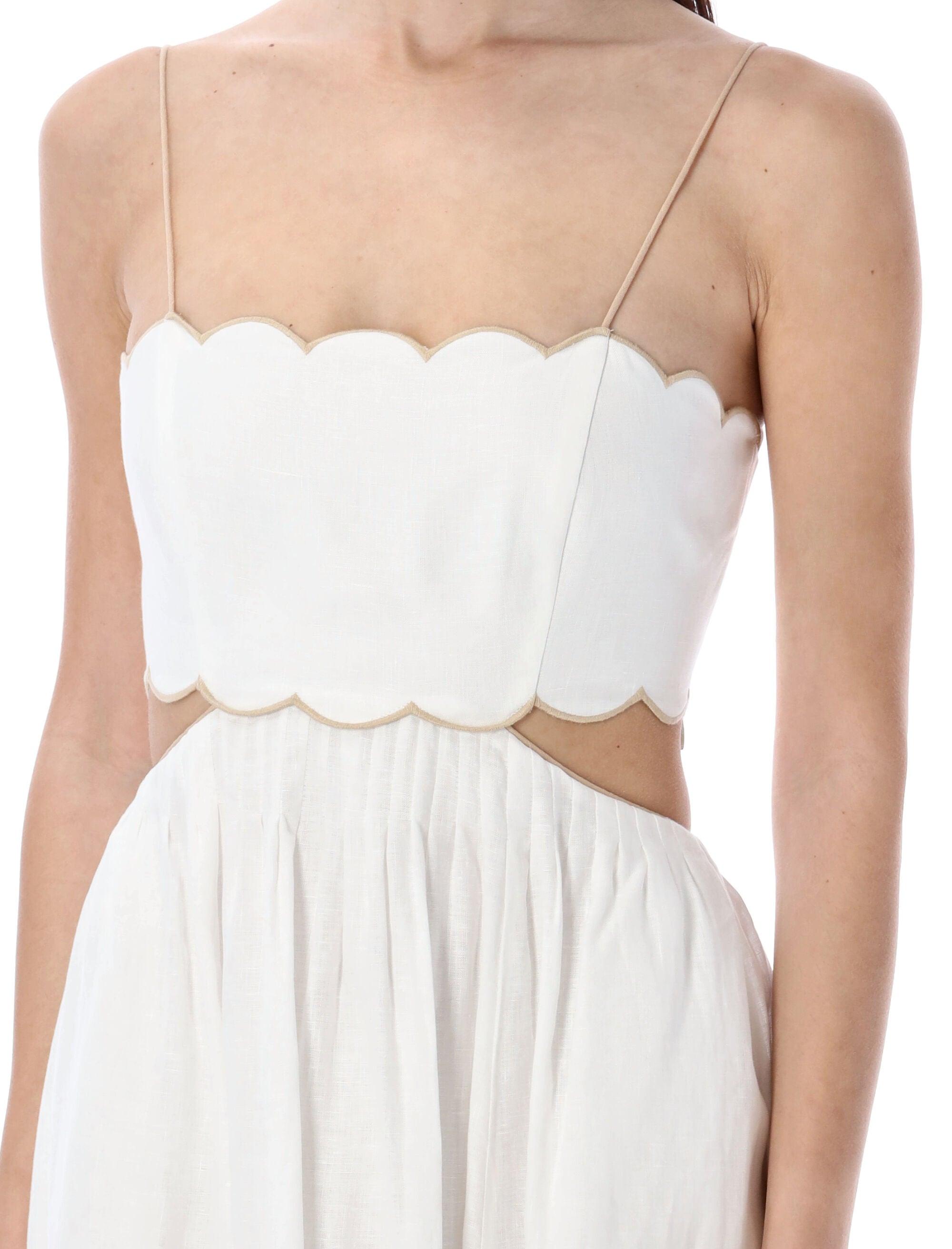 Zimmermann Aliane Scalloped Floral Print Linen Mini Dress In White Modesens