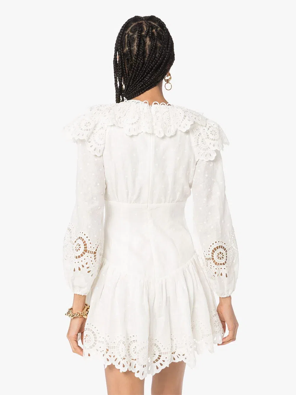 Zimmermann Bellitude Scalloped Lace Mini Dress White Size 8